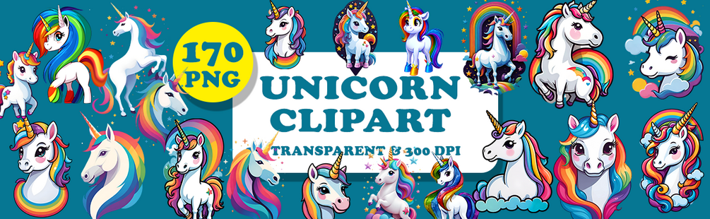 - A zip file containing 170 unique unicorn clipart PNG images